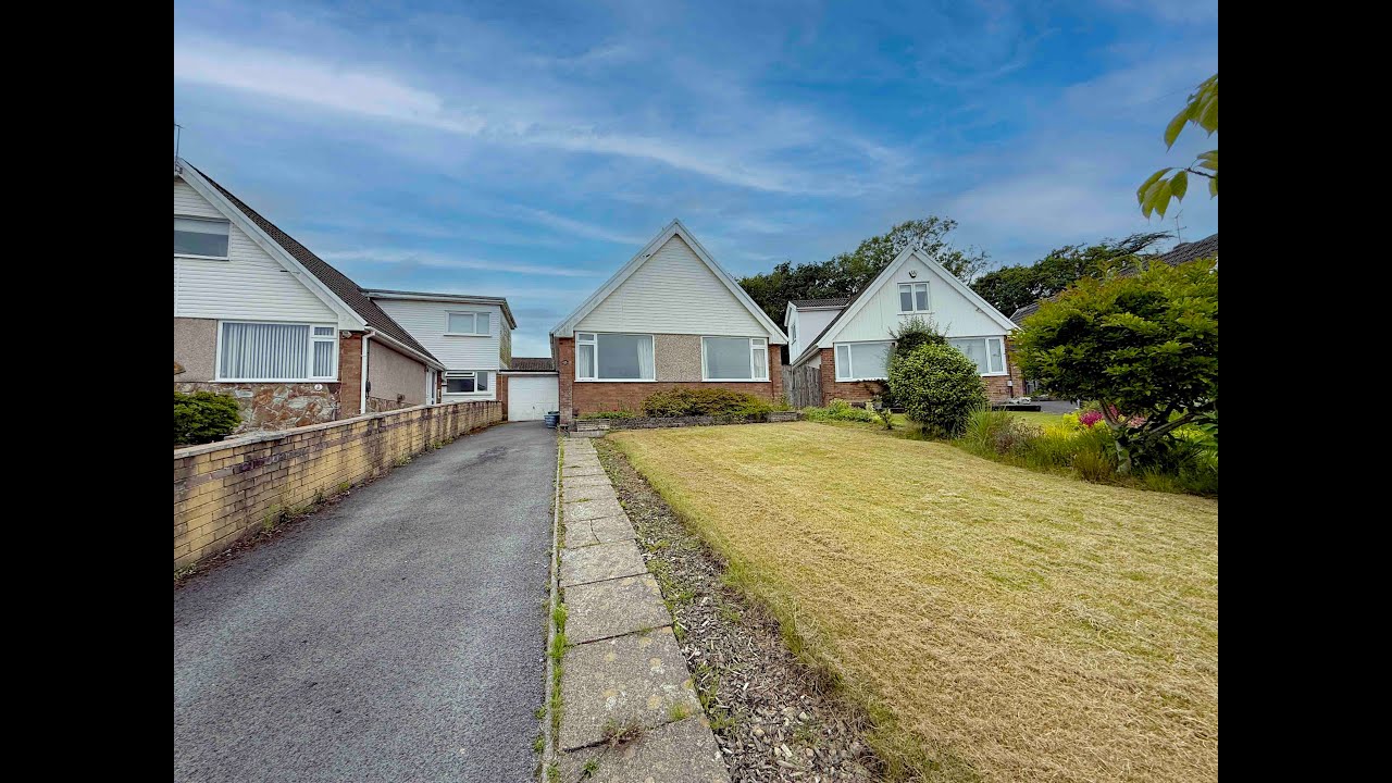 Driveway leads to lawned frontage with various bushes and shrubbery. Access to side leading to rear. Step up to double glazed front door